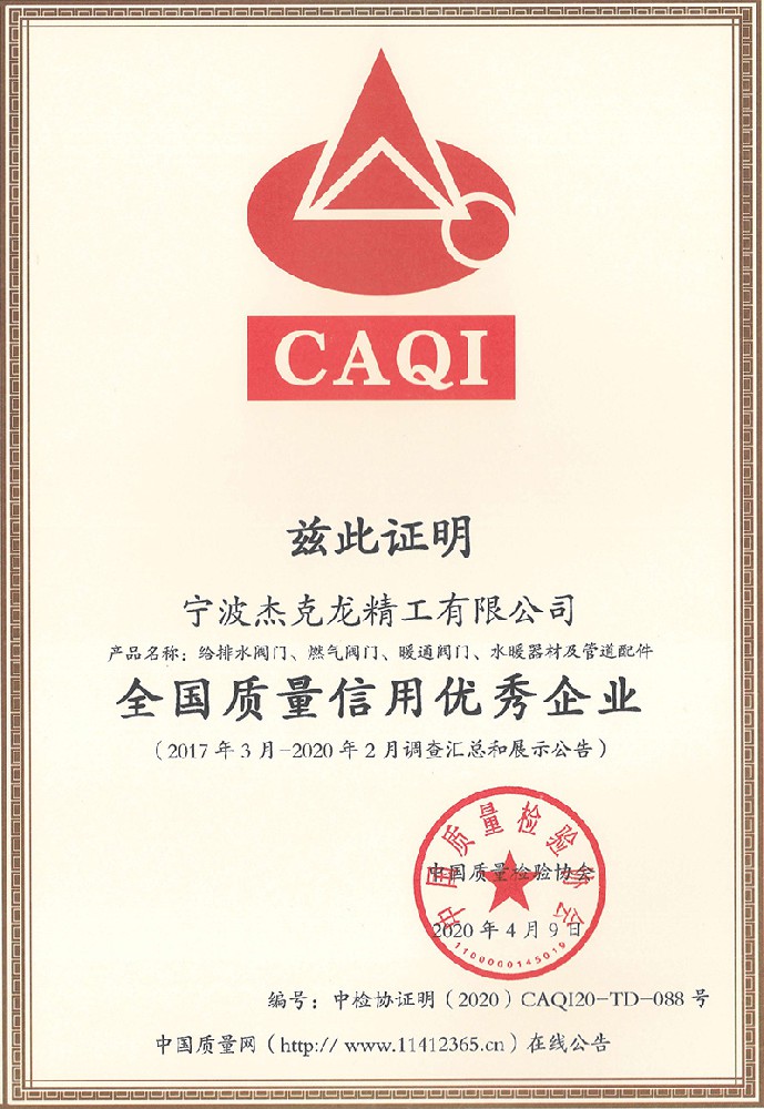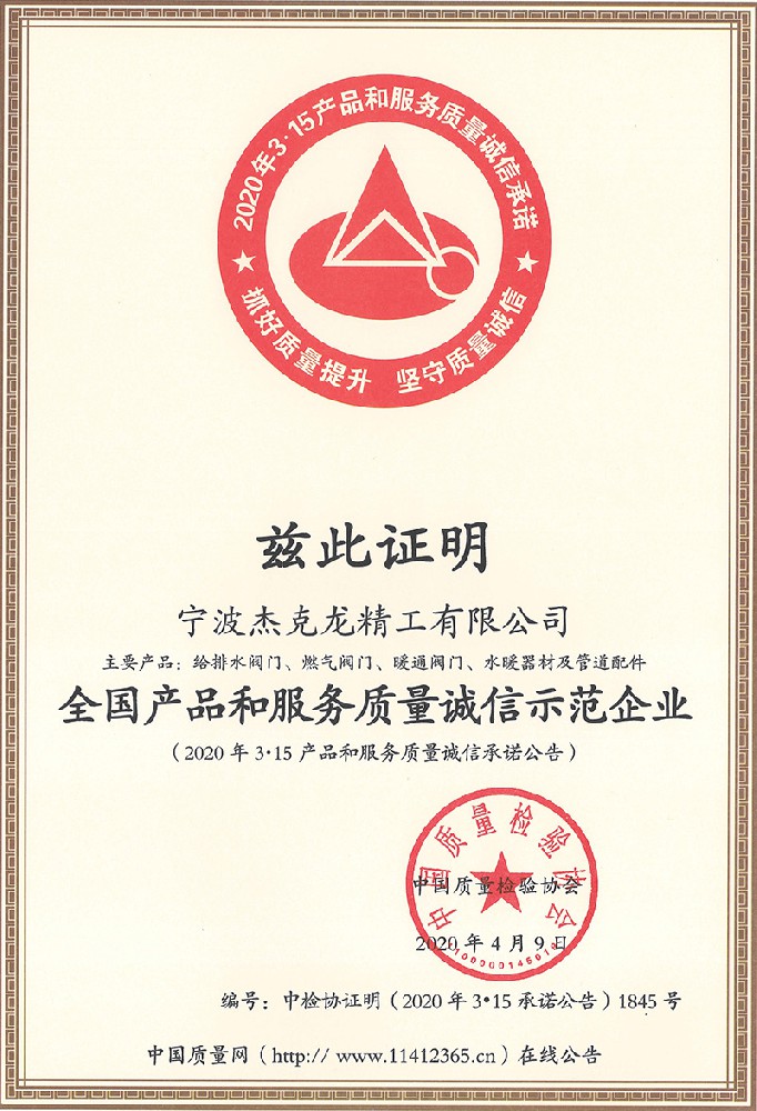 2018年11月8日,杰克龍精工公司正式獲得由浙江制造國際認證聯盟和杭州漢德質量認證服務有限公司聯合簽發(fā)的《浙江制造認證證書》。